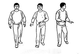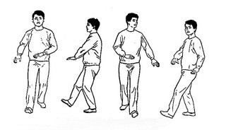 1.要領:①高蹺腳尖,不走八字,兩膝微彎;②松胯松腰; ③導引還丹; ④自然轉頭; ⑤ 陰陽調整; ⑥動靜相兼; ⑦搖動夾脊;⑧利用慣性。