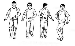 2.要求:按一、二、三步點行走法的順序,各操練二十分鐘。換步時中間作三開合;二步點行走法左右需換腳,換腳時作一開合。