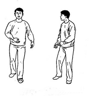 3.松靜站立(癌症一般為2--3分鐘,慢性病一般3--5分鐘),咽津三口(用意念使玉液歸中丹田,為玉液還丹),然後放平舌頭,緩睜兩眼,伸直膝關節,恢復自然狀態。