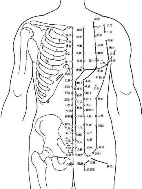經屬:任脉。擊中後,衝擊腹壁,動靜脉和肋間,破氣血淤,身體失靈。